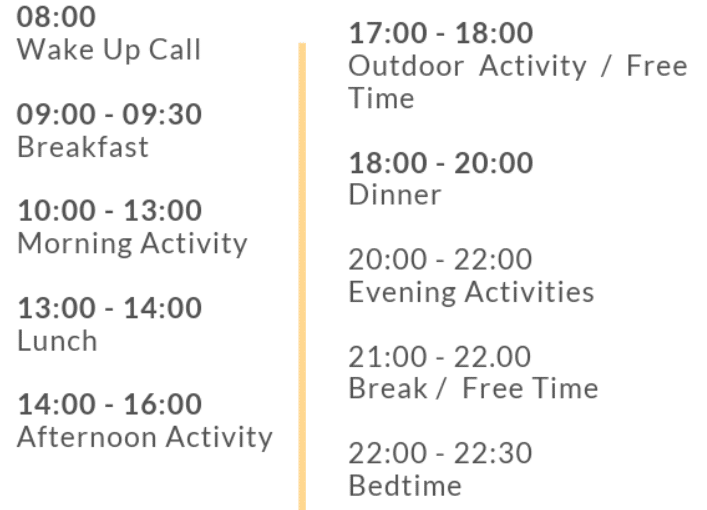 - Outdoor Adventure: 22/06, 29/06, 6/07, 13/07, 20/07, 27/07, 3/08, 10/08